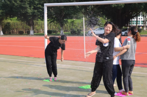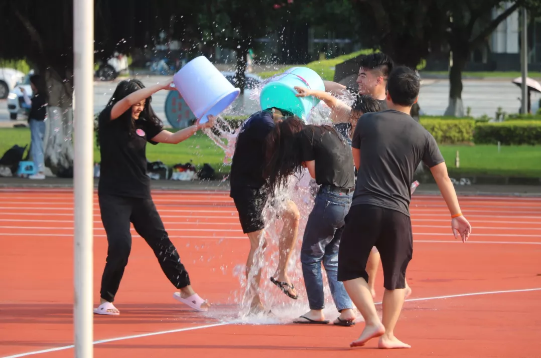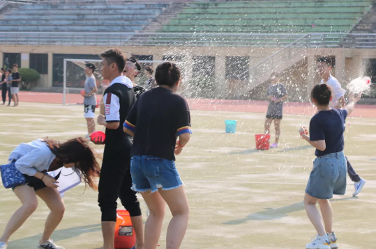 在大家都完成了6个小游戏之后,扔水球大战正式开始,场面一片混乱,大家身上的水越来越多,脸上的笑容也越来越灿烂。