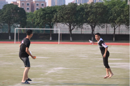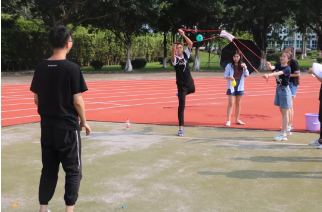 游戏二:将水球用所给装置抛出,3米外的队友每接到一个都会加分,限时30秒。