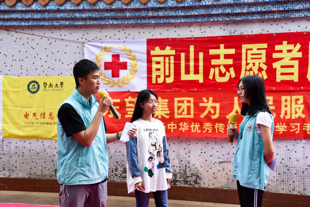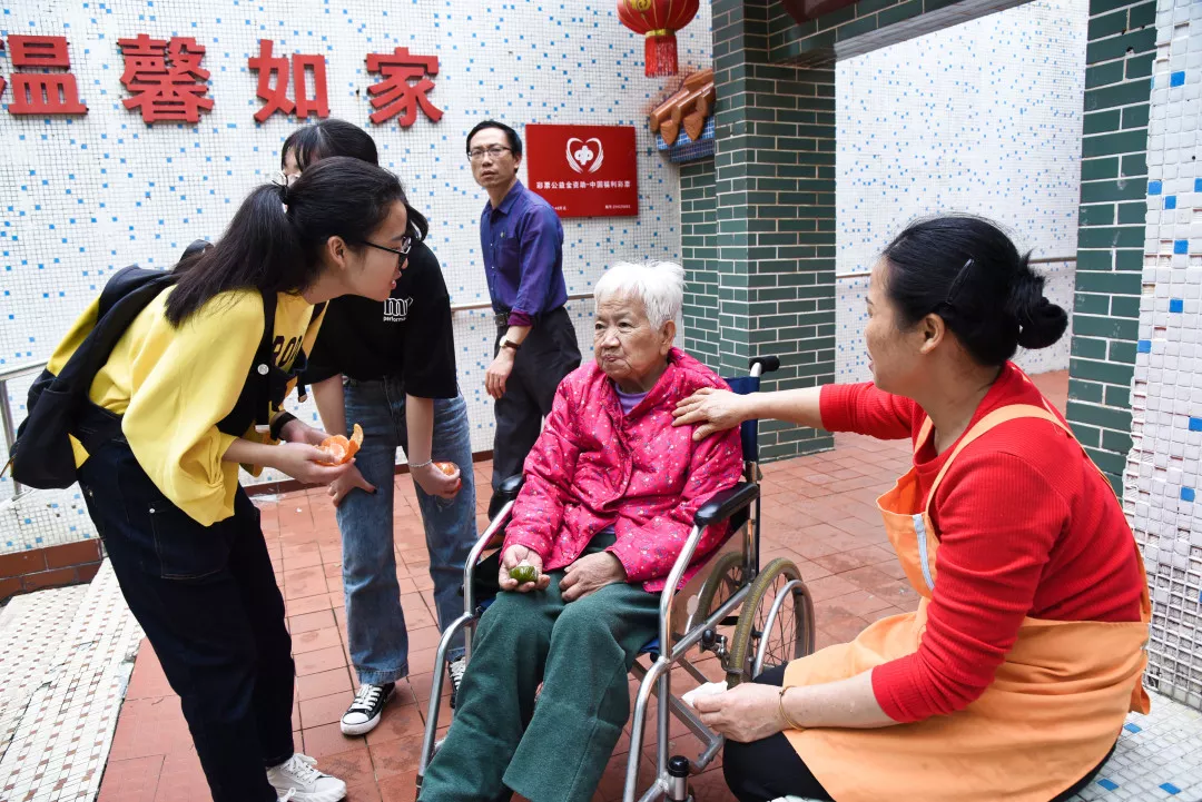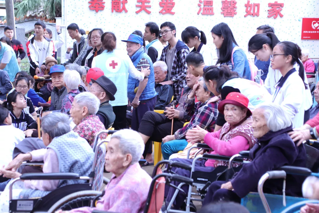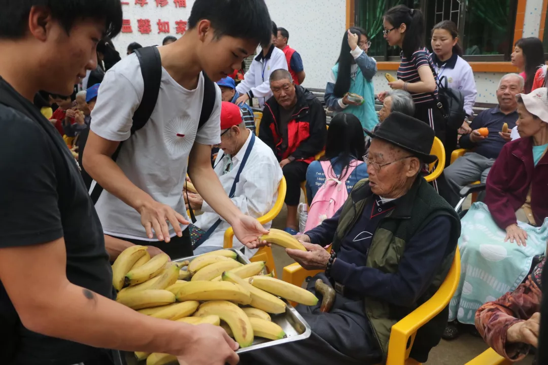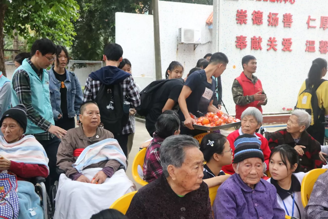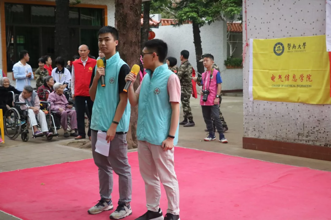 与来自北师大,职院的学生以及红十字会的志愿者们为老人们来一场生动有趣的表演,在享受阳光与欢笑的同时暨大学子为每位老人都送上美味适宜的水果。