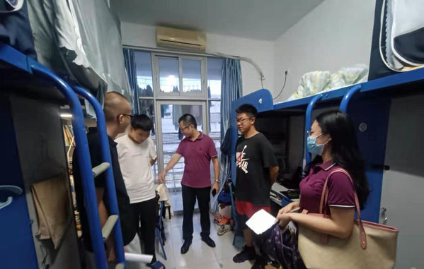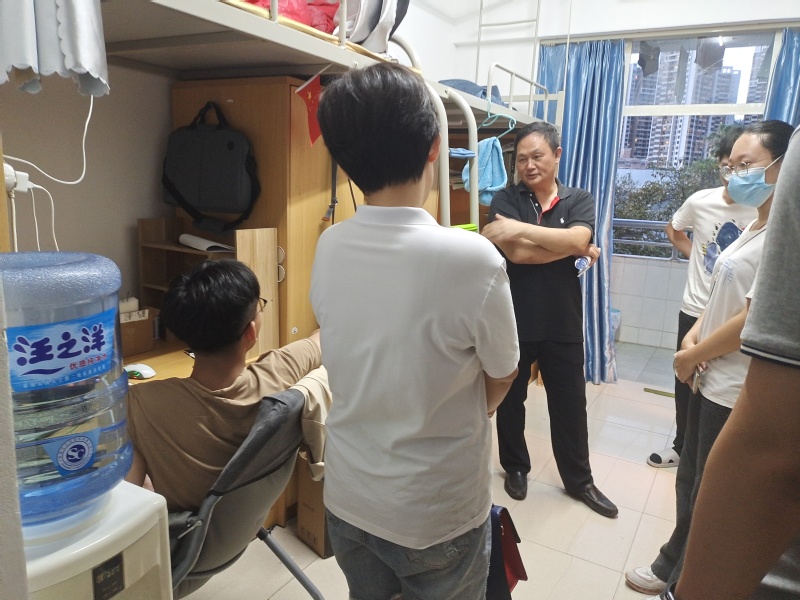 6月11日晚,校区学生工作办公室主任陈韶鹏与学院党总支负责人等走访了学院2020级学生宿舍。