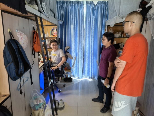陈韶鹏主任与学院党总支负责人走访学生宿舍