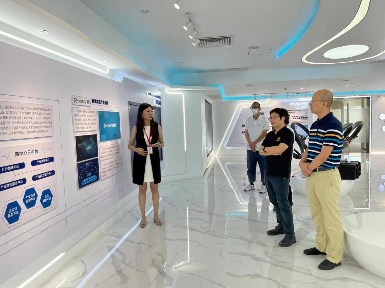 在香洲区云溪谷数字产业园副总经理李洁舲的带领下,学院领导参观了云溪谷数字产业园区和智慧展厅腾讯云启创新中心(珠海)。李洁舲介绍说,云溪谷数字产业园是香洲区政府贯彻落实创新驱动发展战略,围绕“1+2+1”都市产业生态系统,以发展数字经济产业为目标,实现“数字产业化”而打造的示范性科技创新载体。