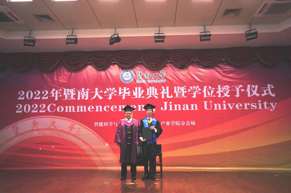 6月22日下午,350vip浦京集团官网2022年毕业典礼暨学位授予仪式隆重举行,主会场设在校本部邵逸夫体育馆,350vip浦京集团官网/人工智能产业学院分会场设在珠海校区行政楼阶梯会议室,典礼采取“线上+线下”模式进行。珠海校区执行主任屈挺教授作为分会场主礼教授为毕业生颁发毕业证并行拨穗礼。学院党总支副书记郑桂华、副院长刘晓翔副教授及学院师生代表等150余人参加典礼,共同见证2022届毕业生圆满完成学业,奔向似锦前程。