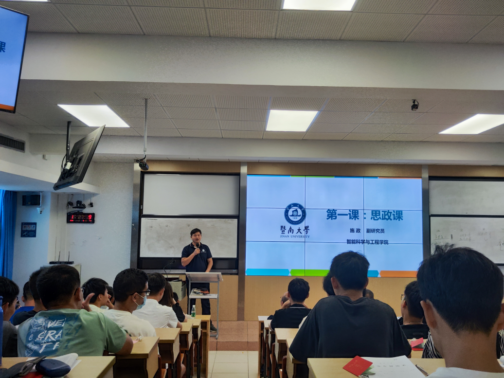 研究生导师施政老师给研究生新生上了一堂思政课。他指出,人无精神不立,国无精神不强,理想是前进的根本动力,是照亮前路的指明灯。我们应首先树立自己的远大理想,并将理想与国家、社会乃至民族的崛起紧密结合,切忌狭隘短浅。