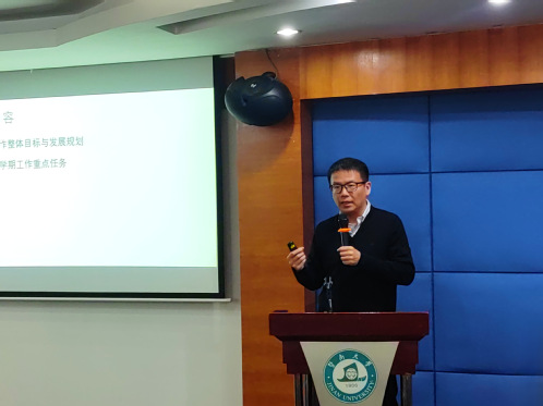 学院副书记陈韶鹏,副院长闫勉、施政分别就学生思政建设、科技竞赛、校友工作、本科教学、人才培养、产业学院建设、学科建设与科研、研究生教育管理、对外交流等方面进行了任期目标的介绍和本学期的工作布置。