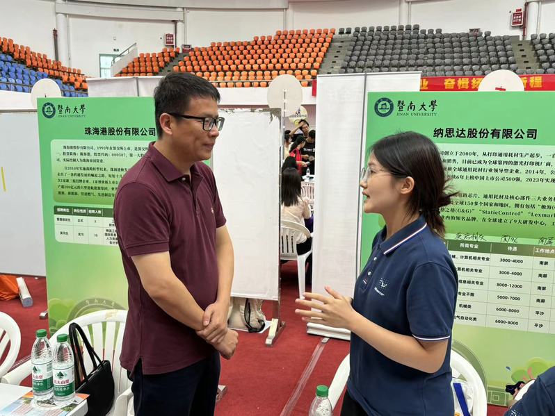 双选会期间,杨光华等来到金山办公、格力电器、纳斯达等参会企业中,与招聘单位负责人和我院参会毕业生亲切交流,认真了解用人单位招聘需求和毕业生、实习生应聘情况,鼓励毕业生抓住关键期积极求职应聘,要树立先就业再择业的就业观,客观看待自身条件和社会需求,勇于应对求职挑战。