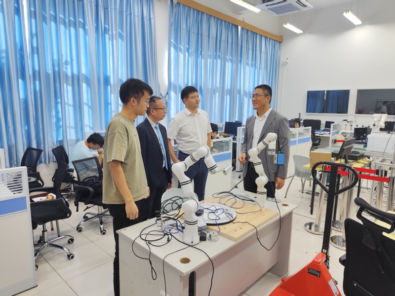 会后,台达集团领导一行前往学院实验室参观,并与师生交流互动。