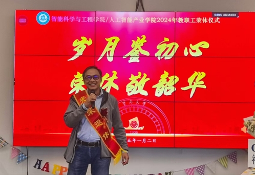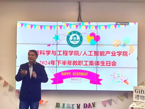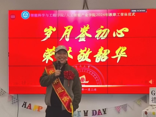 2025年1月2日下午,智能科学与工程学院在实A305室为孔锐教授、吕广庆教授举办荣休会,并为2024年第三、第四季度38名寿星老师送上美好祝福。学院党总支书记周玉宇、院长杨光华、学院党总支副书记陈韶鹏、副院长施政及寿星在内的50余位教职工参加本次活动。